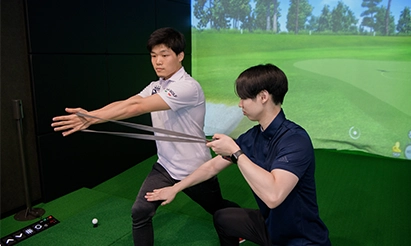 ご⾃⾝のゴルフのレベルを⾶躍的に向上していただくため、 ご希望の⽅にはレッスンプロとマッチングさせていただく、 プロからの的確なアドバイスを直接習うことが可能です。